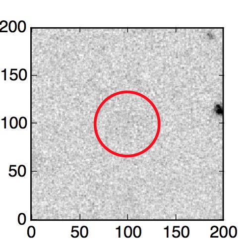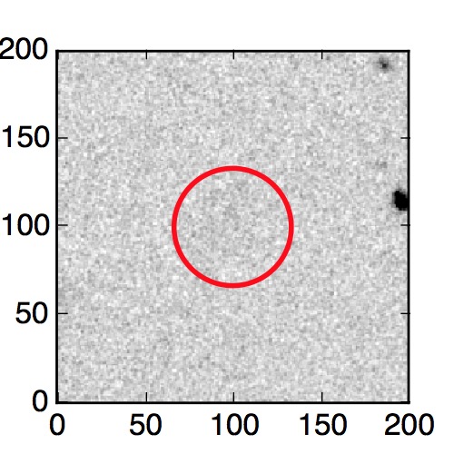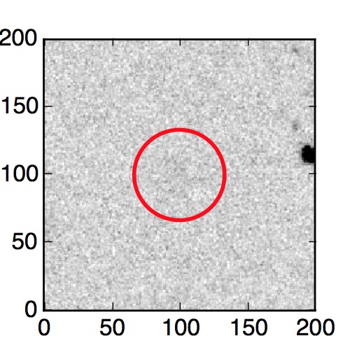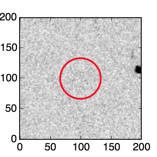 The red circle in the various panels is 1" in radius. The images are 6"x6".