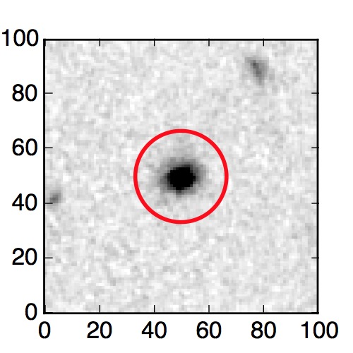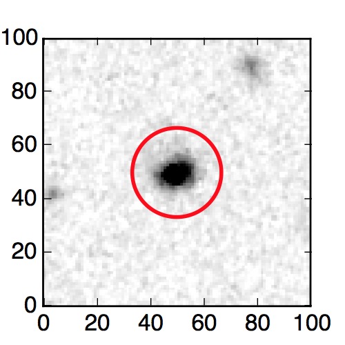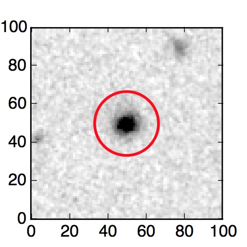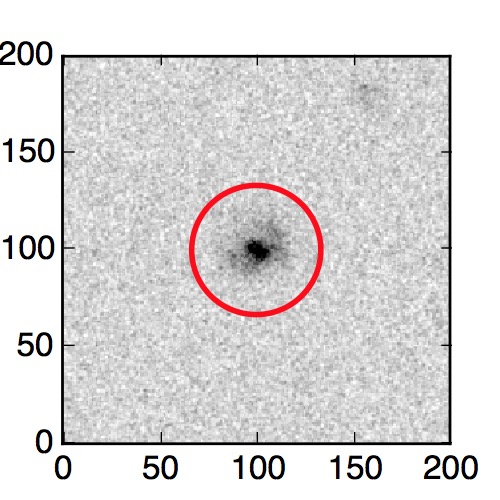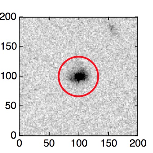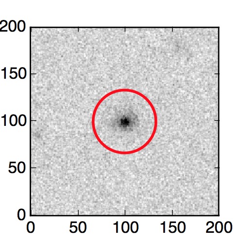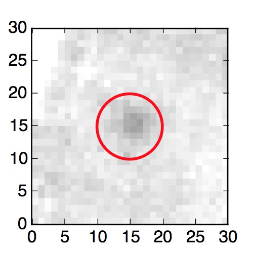 The red circle in the various panels is 1" in radius. The images are 6"x6".