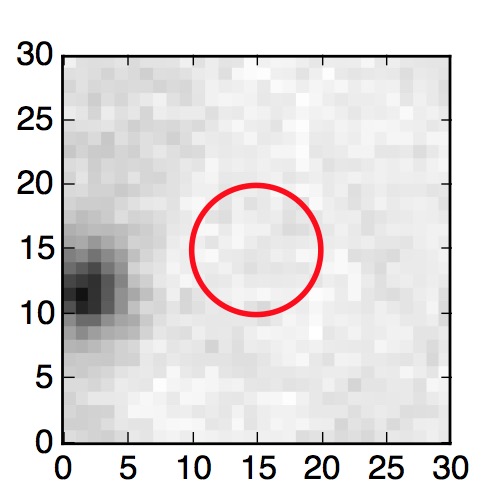 The red circle in the various panels is 1" in radius. The images are 6"x6".