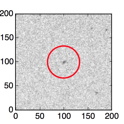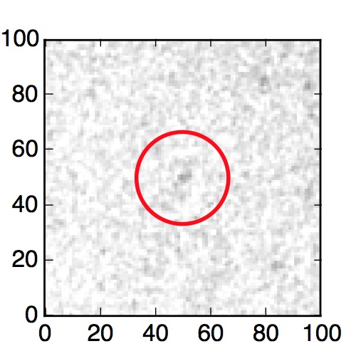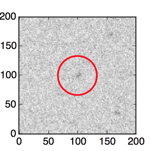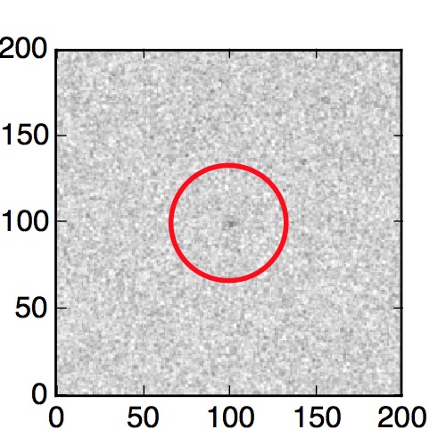 The red circle in the various panels is 1" in radius. The images are 6"x6".