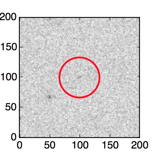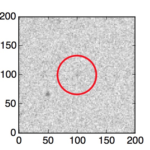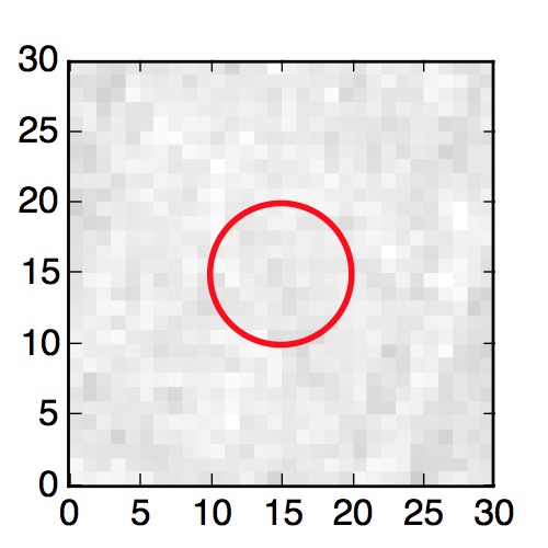 The red circle in the various panels is 1" in radius. The images are 6"x6".