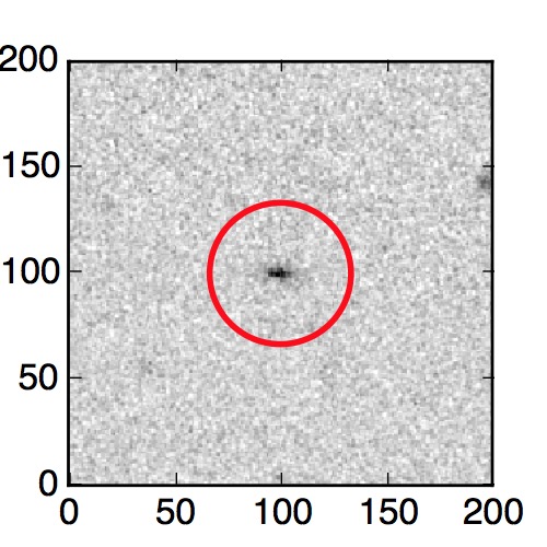 The red circle in the various panels is 1" in radius. The images are 6"x6".