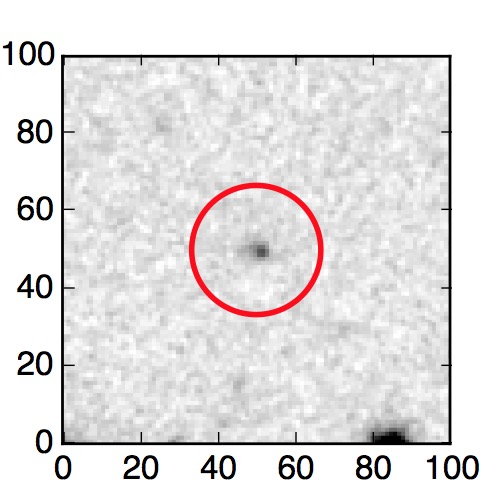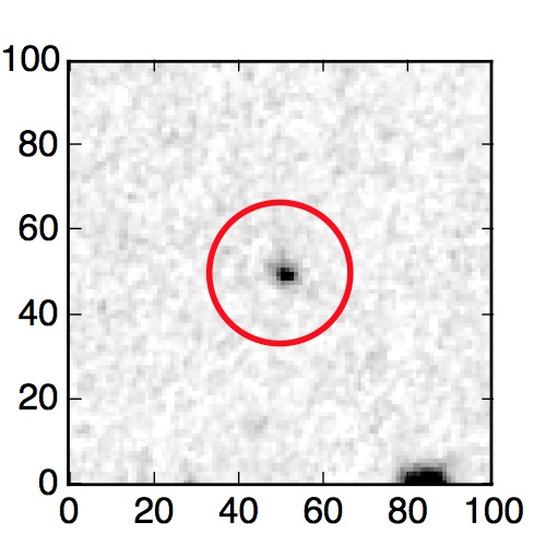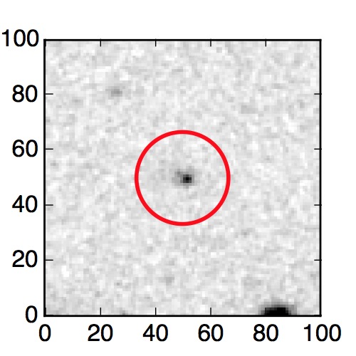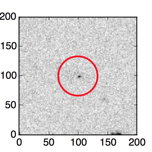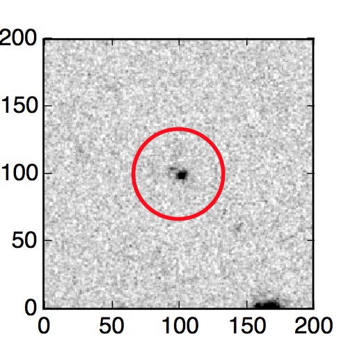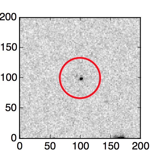 The red circle in the various panels is 1" in radius. The images are 6"x6".