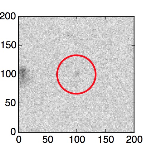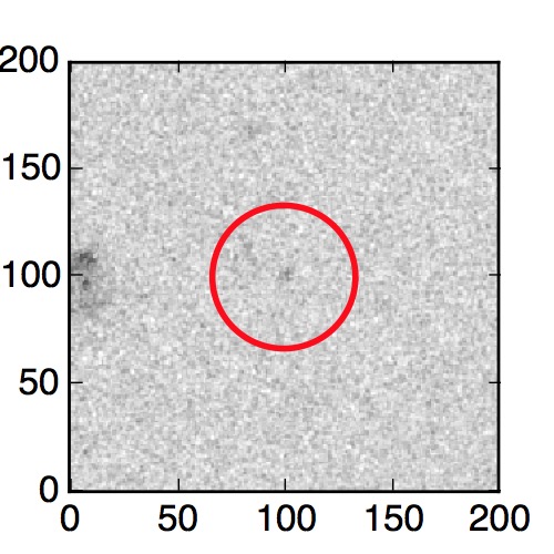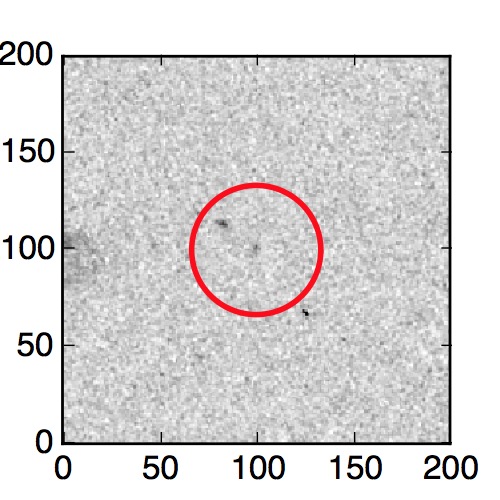 The red circle in the various panels is 1" in radius. The images are 6"x6".