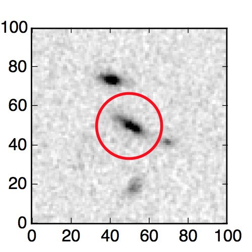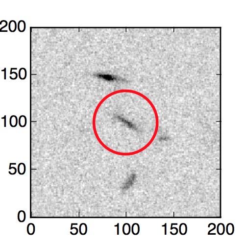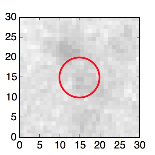 The red circle in the various panels is 1" in radius. The images are 6"x6".
