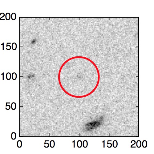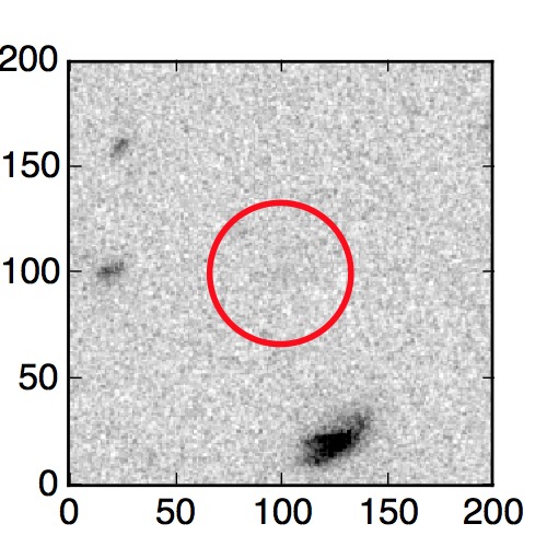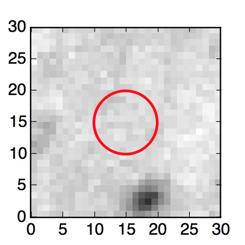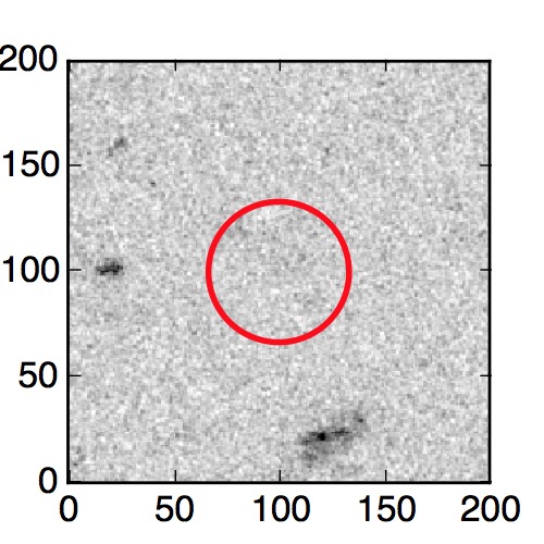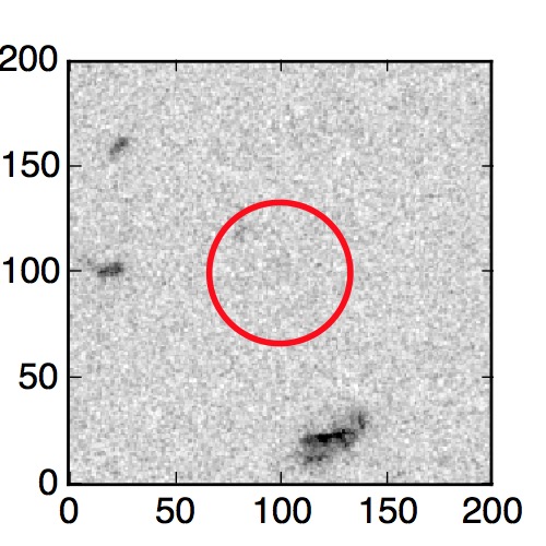 The red circle in the various panels is 1" in radius. The images are 6"x6".