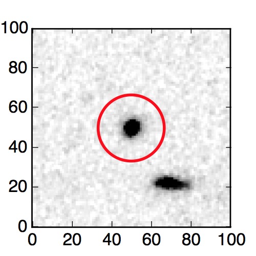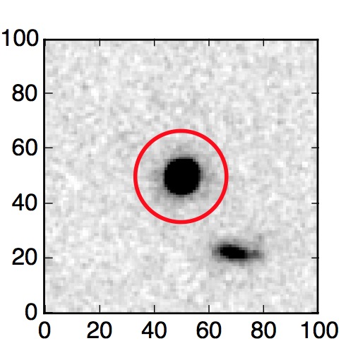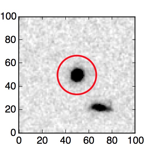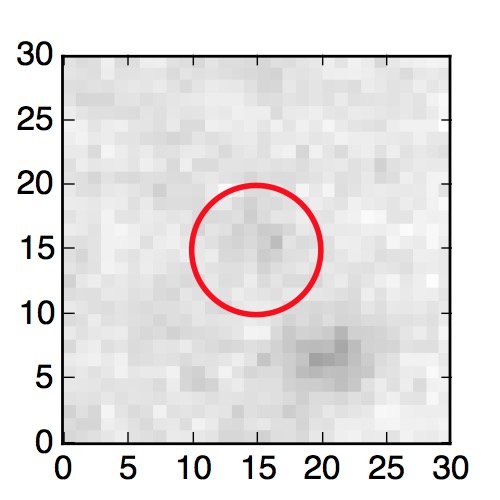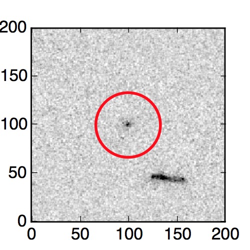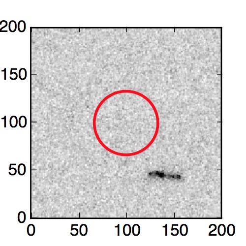 The red circle in the various panels is 1" in radius. The images are 6"x6".