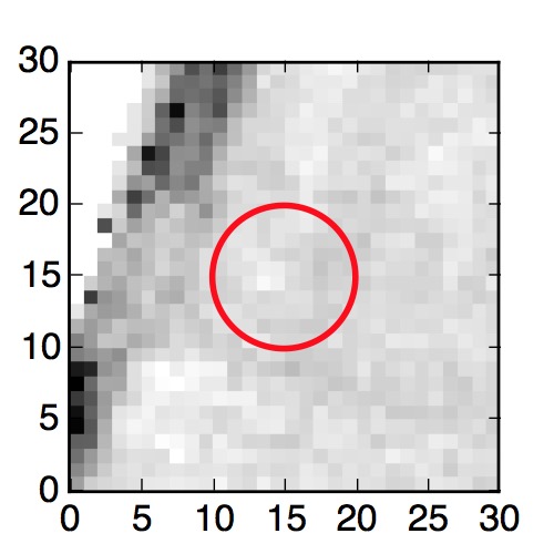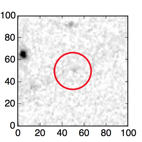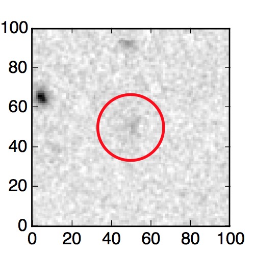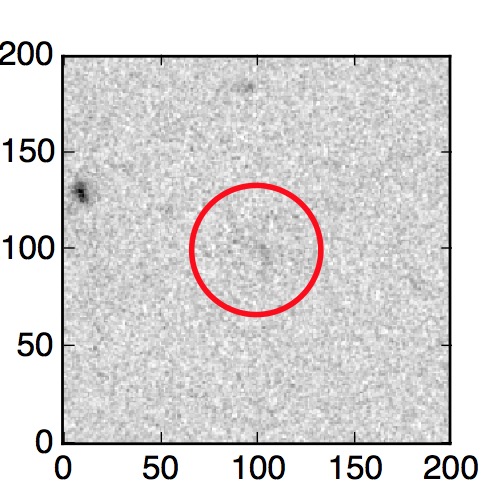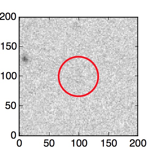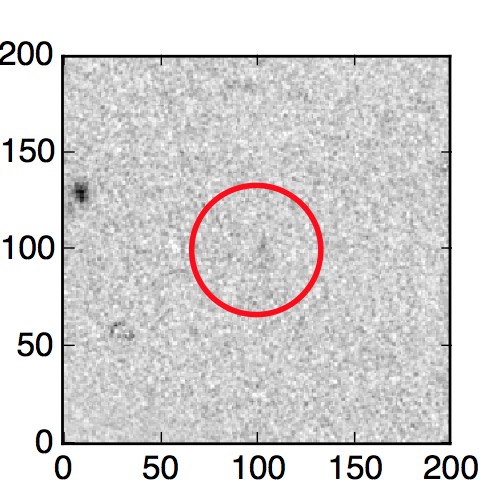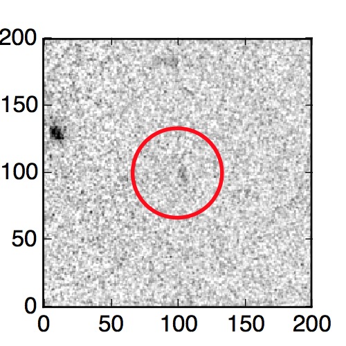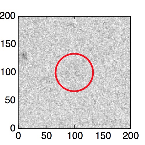 The red circle in the various panels is 1" in radius. The images are 6"x6".