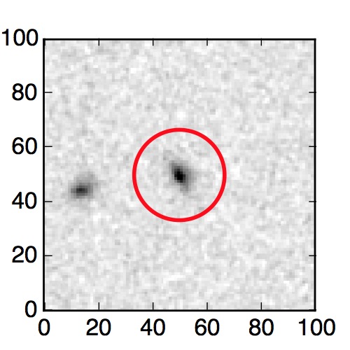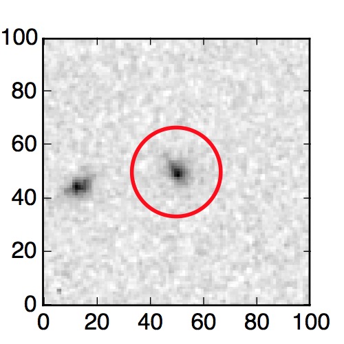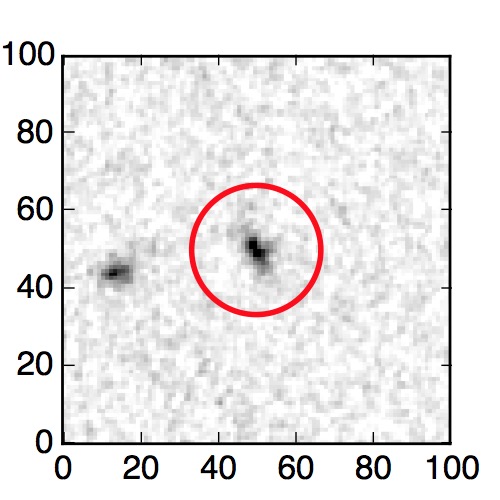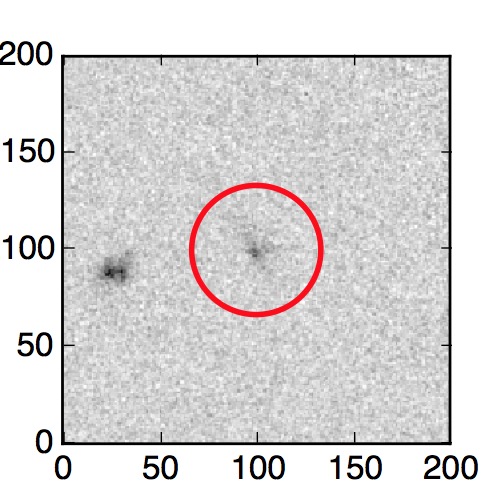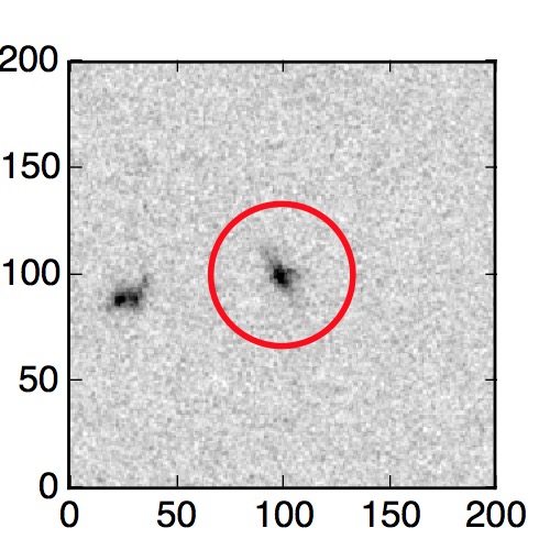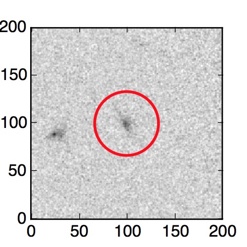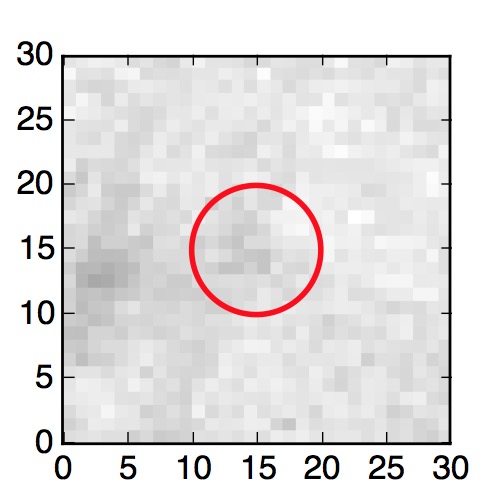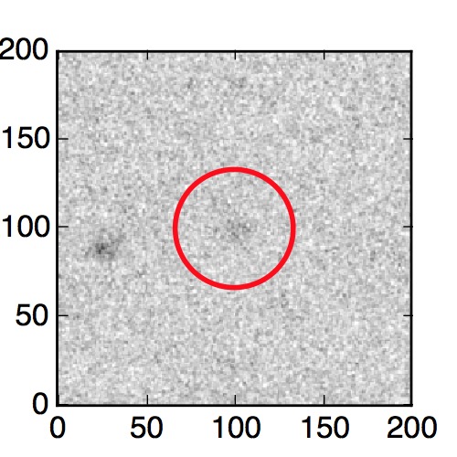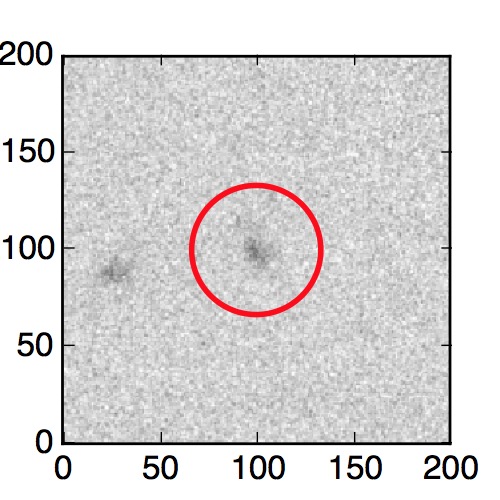 The red circle in the various panels is 1" in radius. The images are 6"x6".