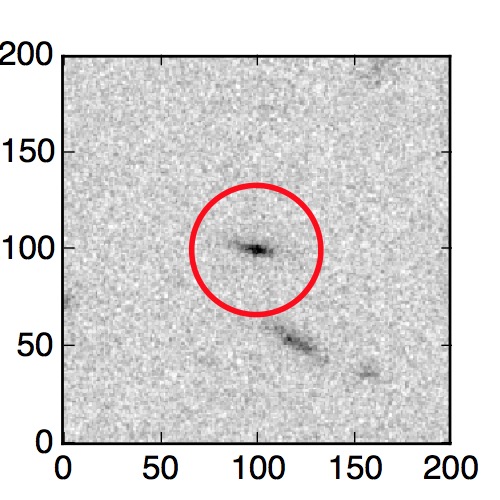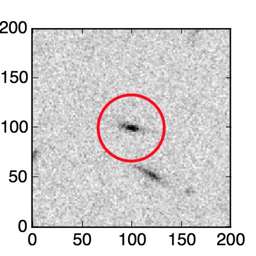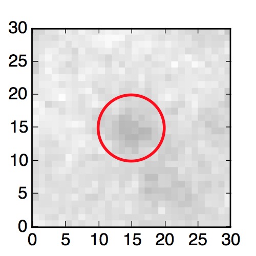 The red circle in the various panels is 1" in radius. The images are 6"x6".