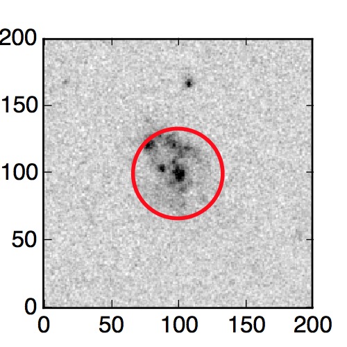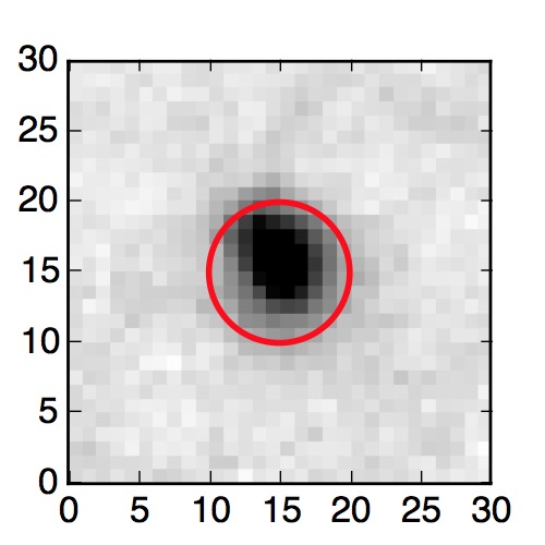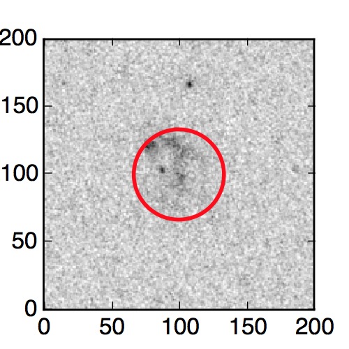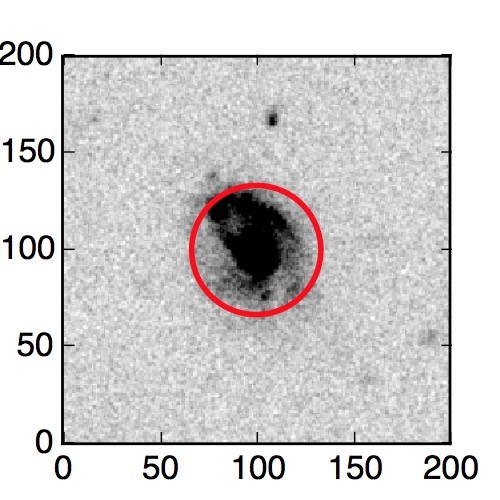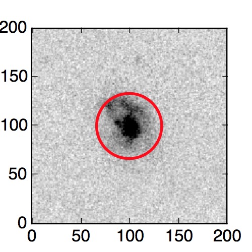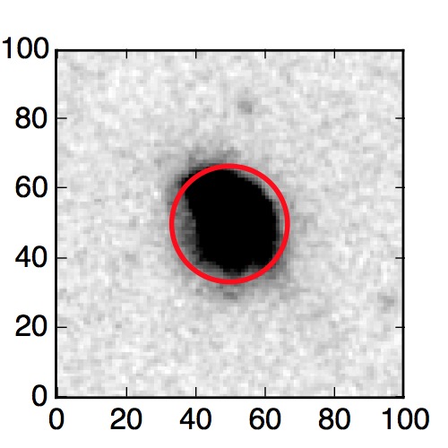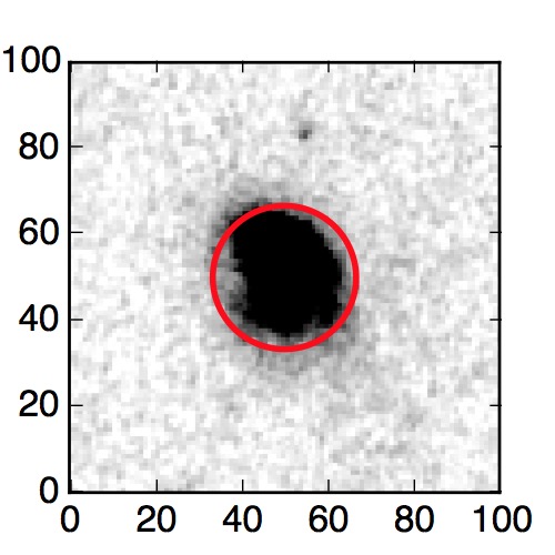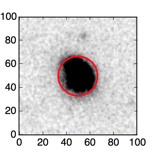 The red circle in the various panels is 1" in radius. The images are 6"x6".