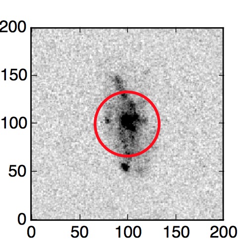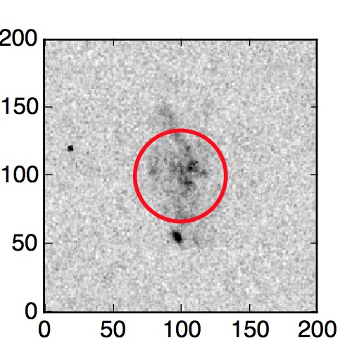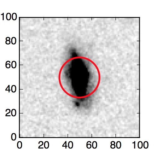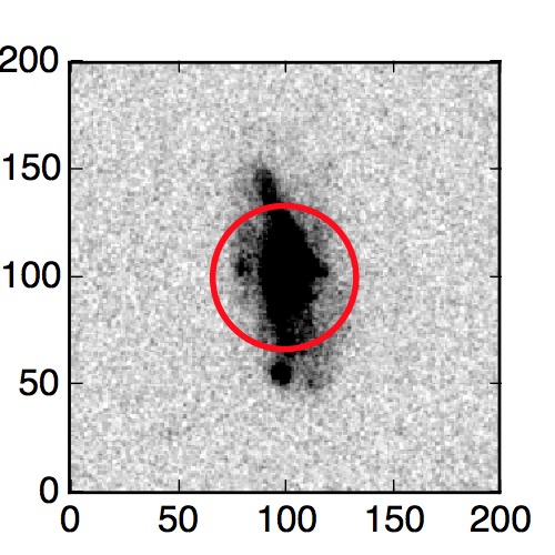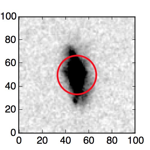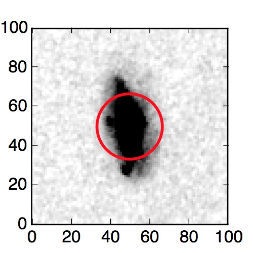 The red circle in the various panels is 1" in radius. The images are 6"x6".