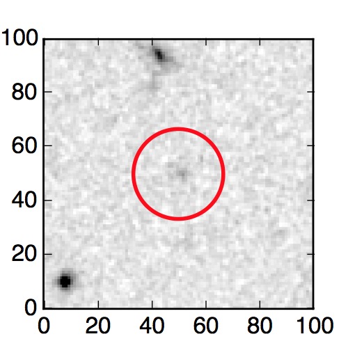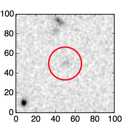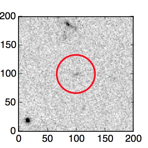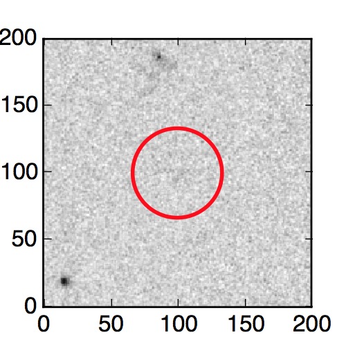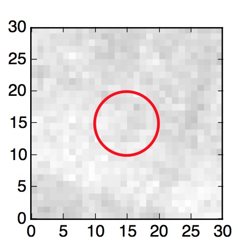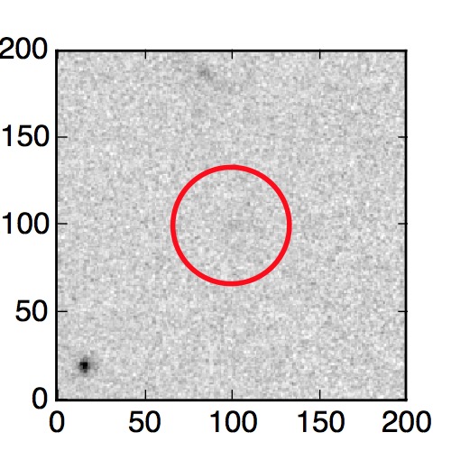 The red circle in the various panels is 1" in radius. The images are 6"x6".