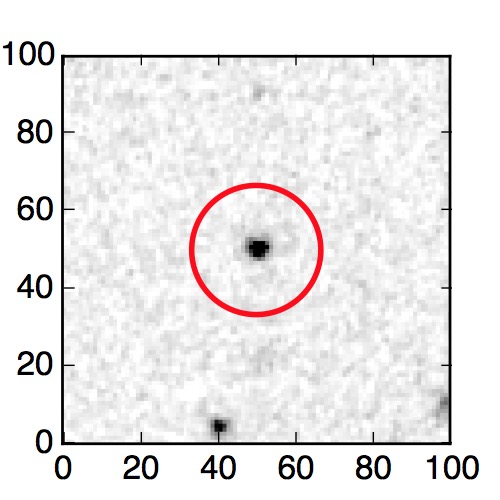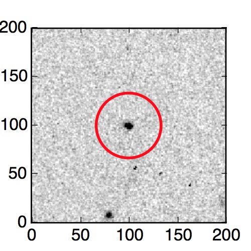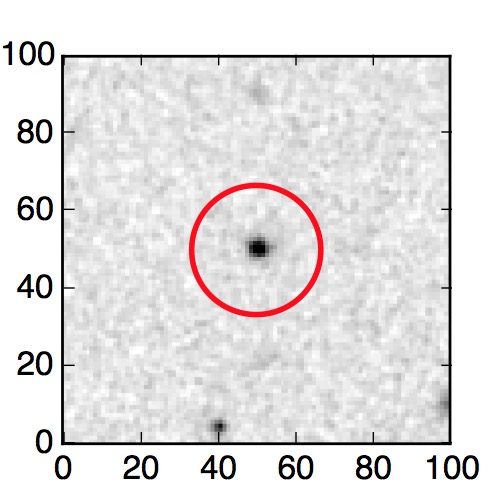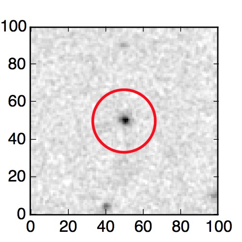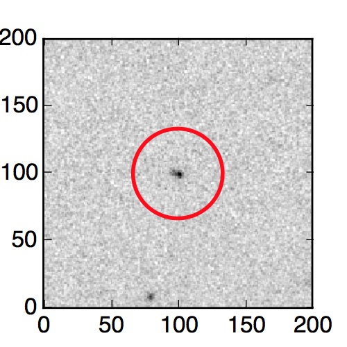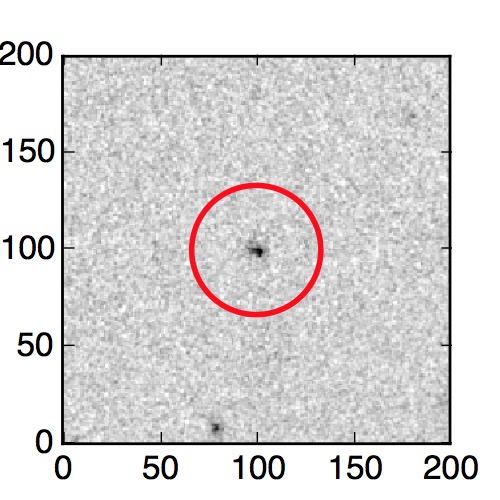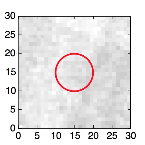 The red circle in the various panels is 1" in radius. The images are 6"x6".