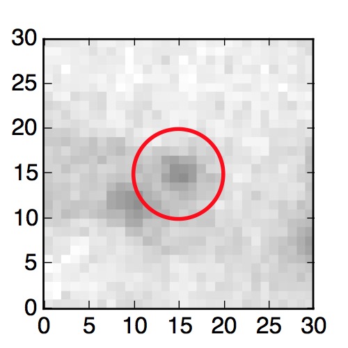 The red circle in the various panels is 1" in radius. The images are 6"x6".