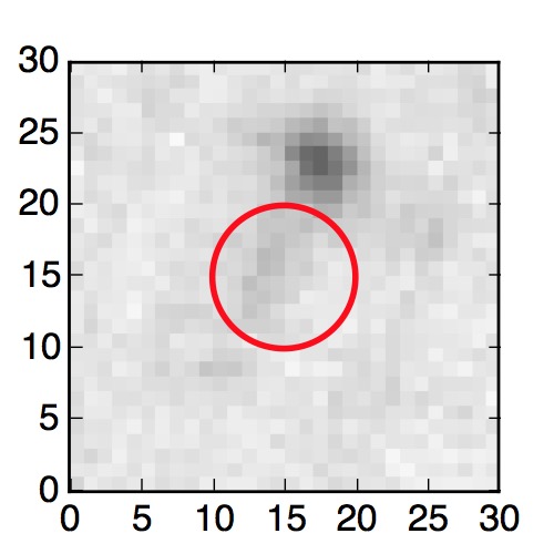 The red circle in the various panels is 1" in radius. The images are 6"x6".