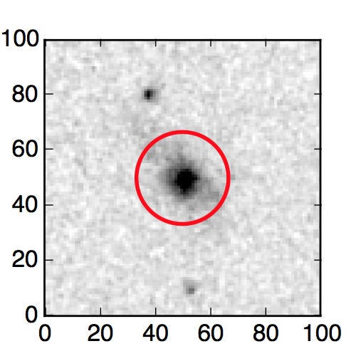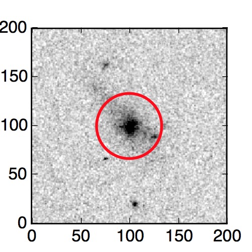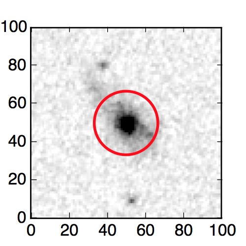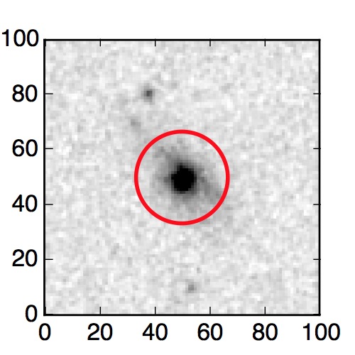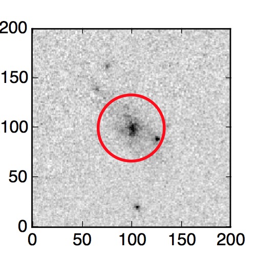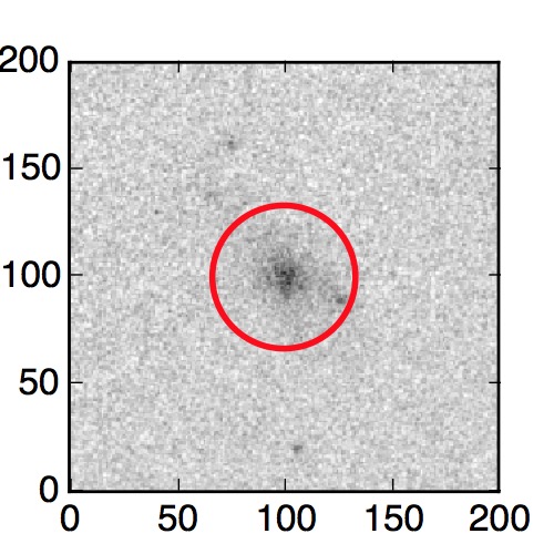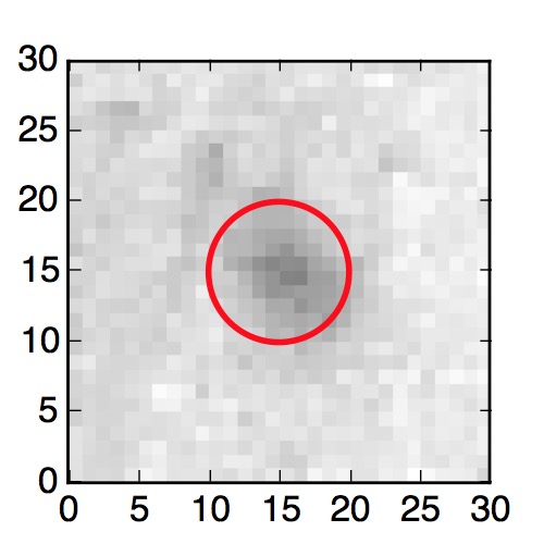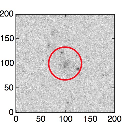 The red circle in the various panels is 1" in radius. The images are 6"x6".