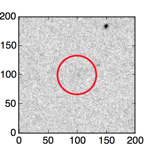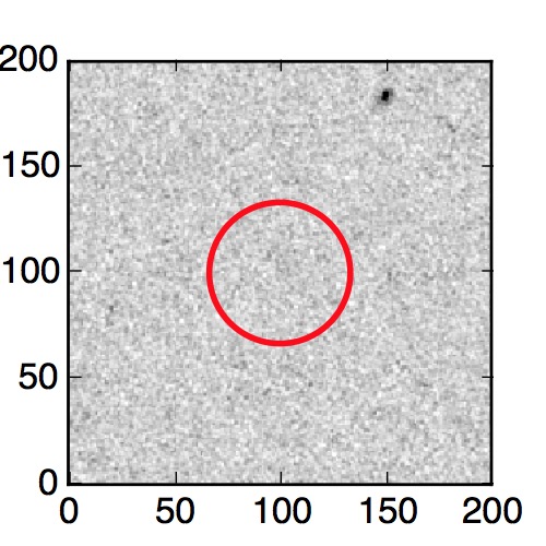 The red circle in the various panels is 1" in radius. The images are 6"x6".