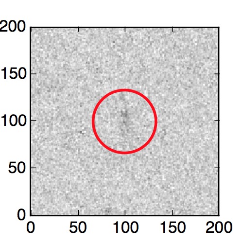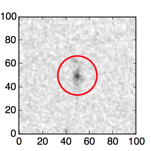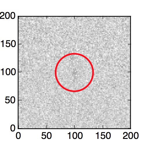 The red circle in the various panels is 1" in radius. The images are 6"x6".