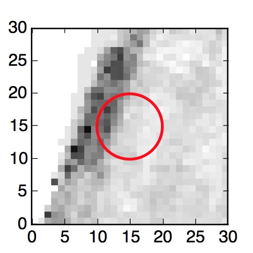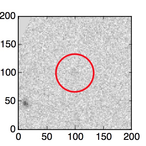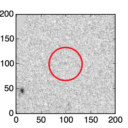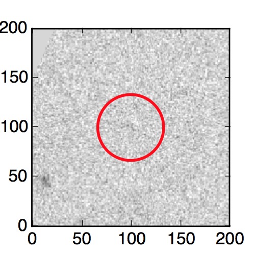 The red circle in the various panels is 1" in radius. The images are 6"x6".