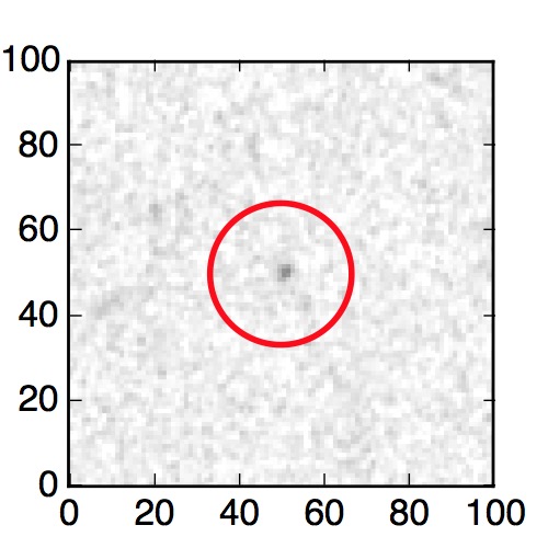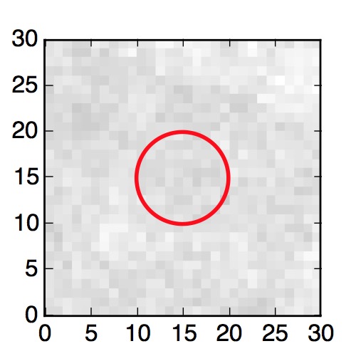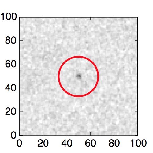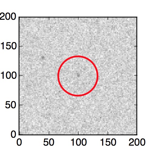 The red circle in the various panels is 1" in radius. The images are 6"x6".