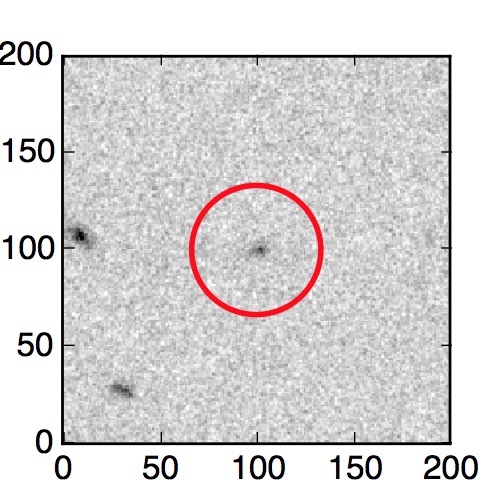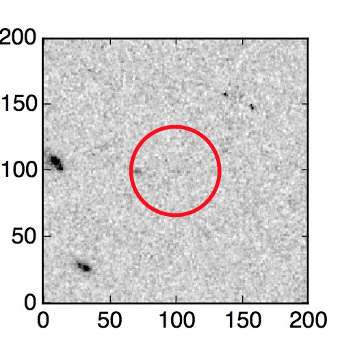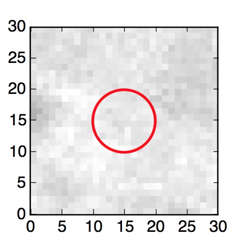 The red circle in the various panels is 1" in radius. The images are 6"x6".