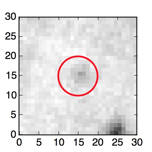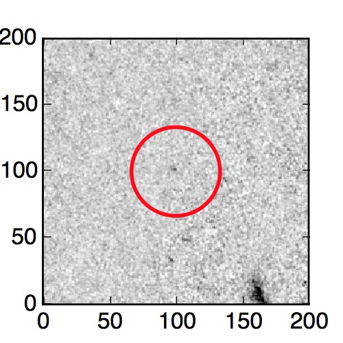 The red circle in the various panels is 1" in radius. The images are 6"x6".