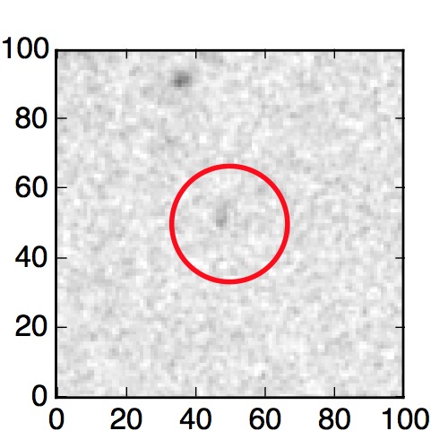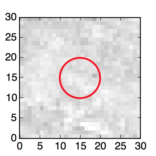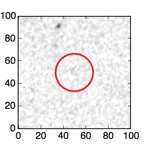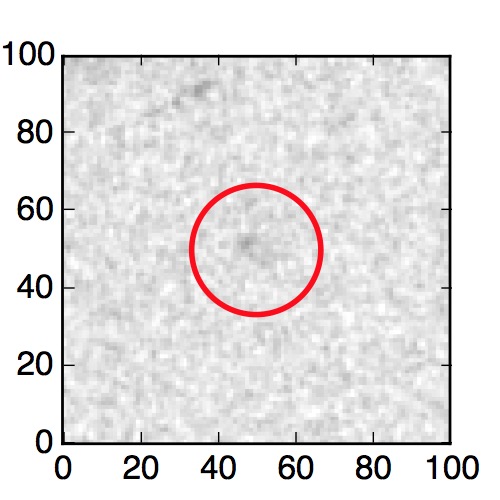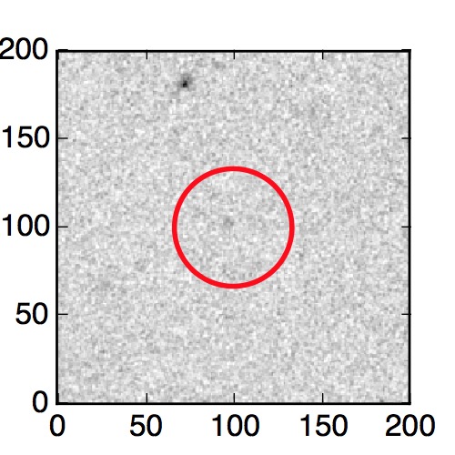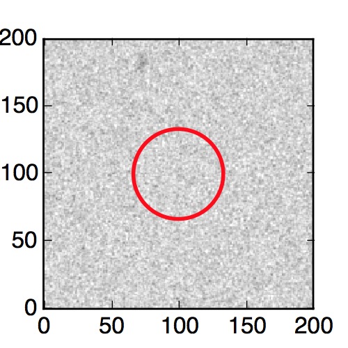 The red circle in the various panels is 1" in radius. The images are 6"x6".