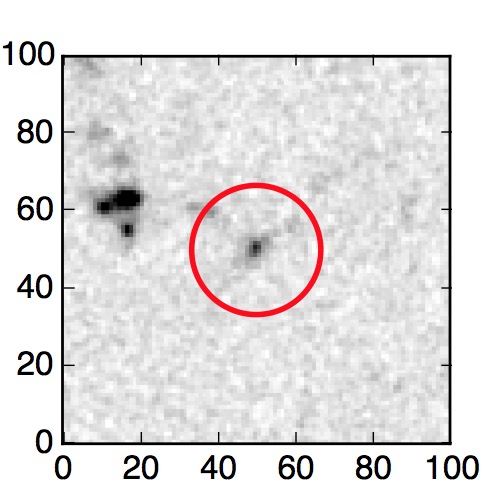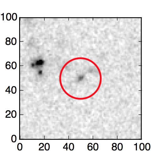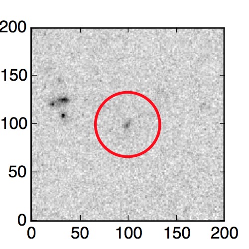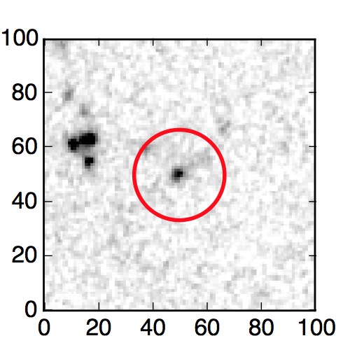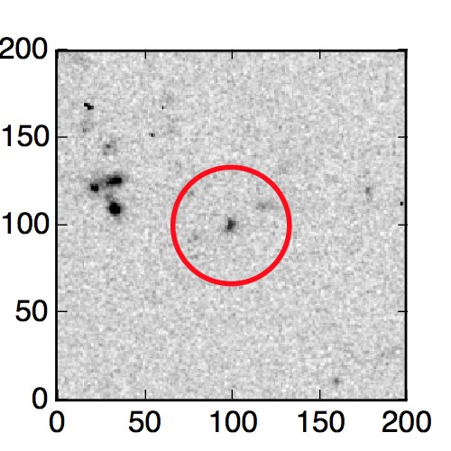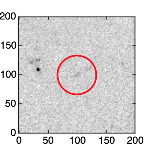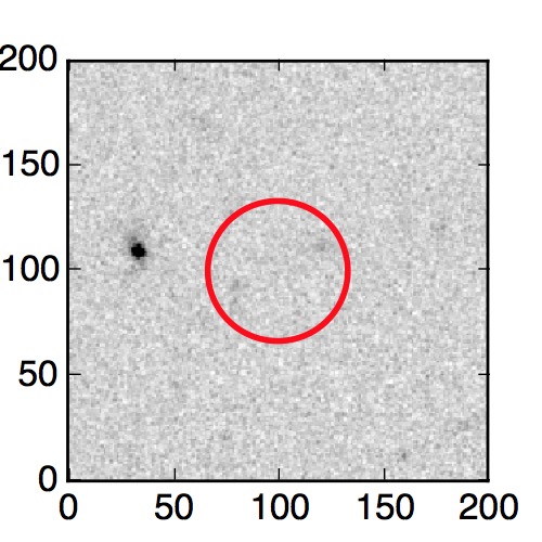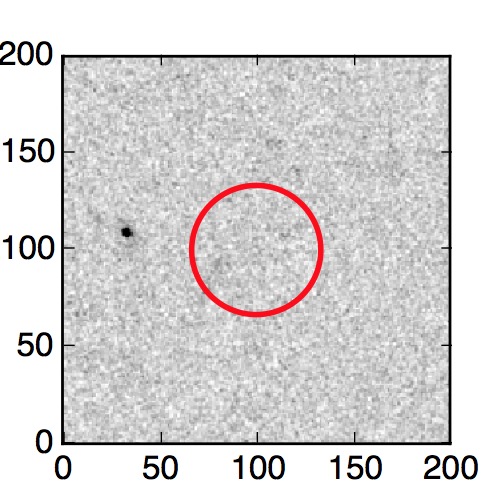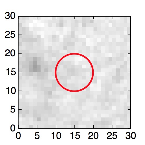 The red circle in the various panels is 1" in radius. The images are 6"x6".