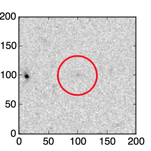 The red circle in the various panels is 1" in radius. The images are 6"x6".