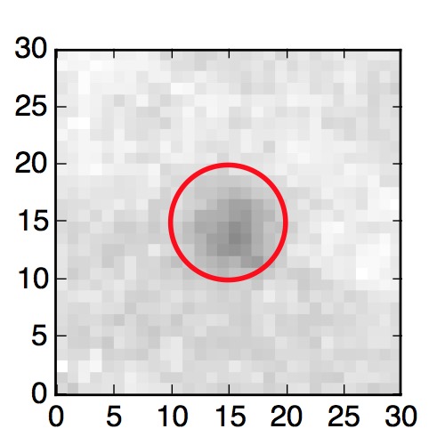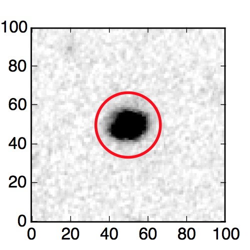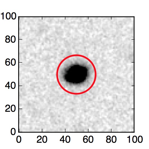 The red circle in the various panels is 1" in radius. The images are 6"x6".