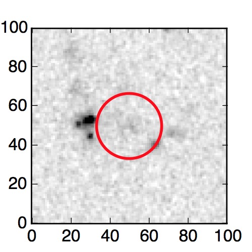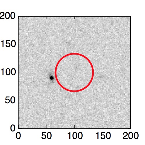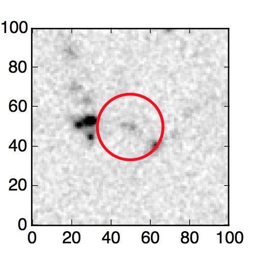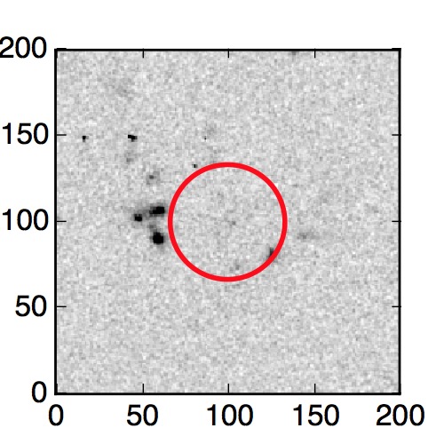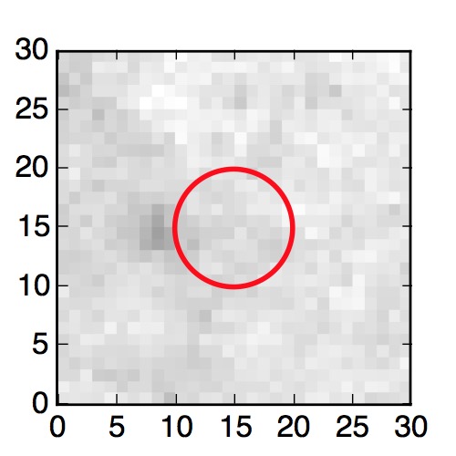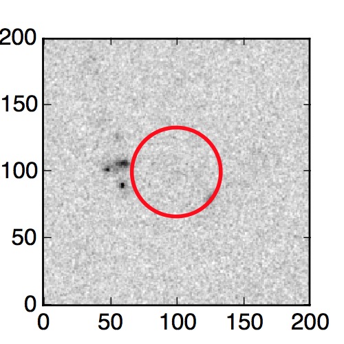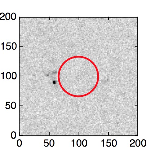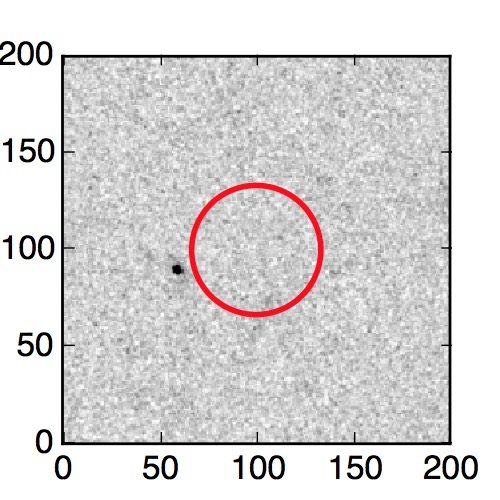 The red circle in the various panels is 1" in radius. The images are 6"x6".