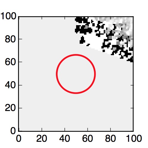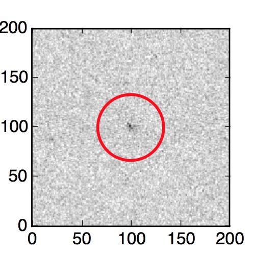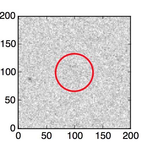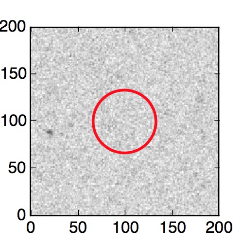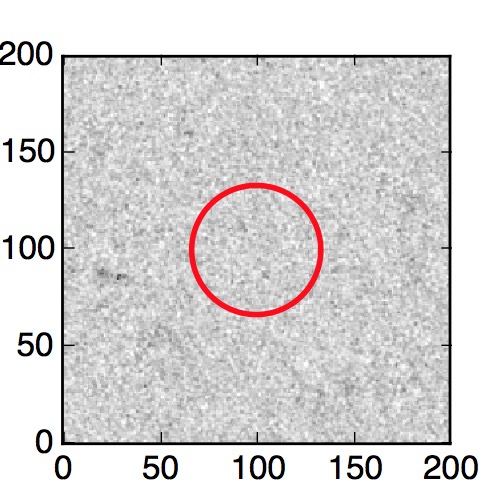 The red circle in the various panels is 1" in radius. The images are 6"x6".