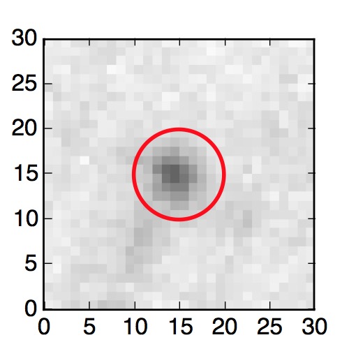 The red circle in the various panels is 1" in radius. The images are 6"x6".