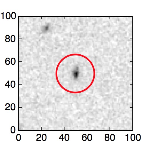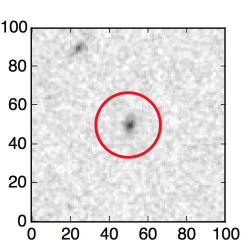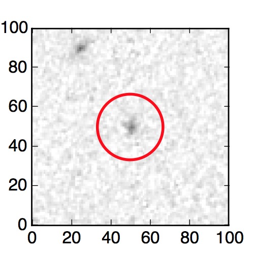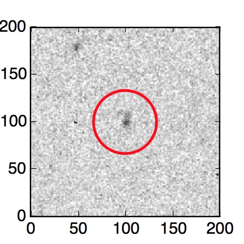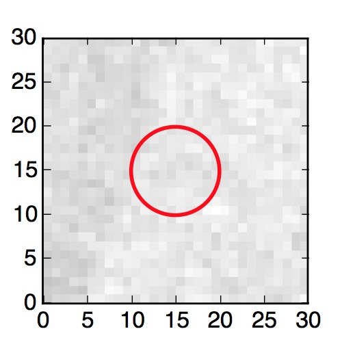 The red circle in the various panels is 1" in radius. The images are 6"x6".