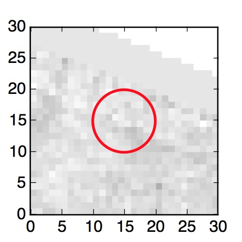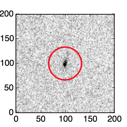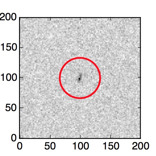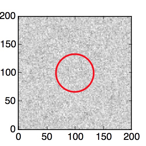 The red circle in the various panels is 1" in radius. The images are 6"x6".