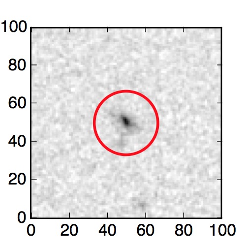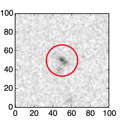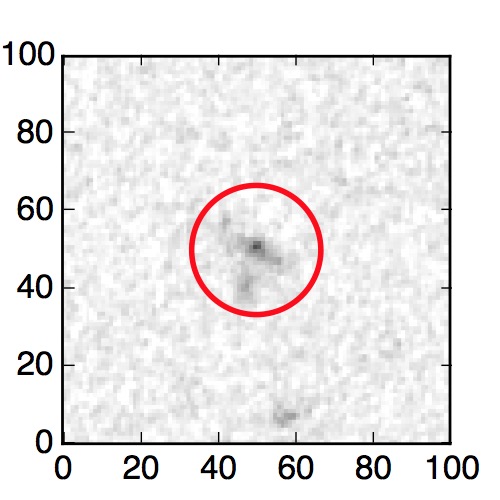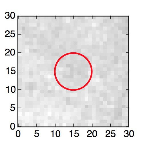 The red circle in the various panels is 1" in radius. The images are 6"x6".