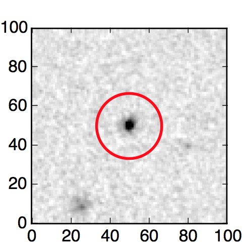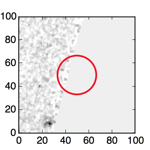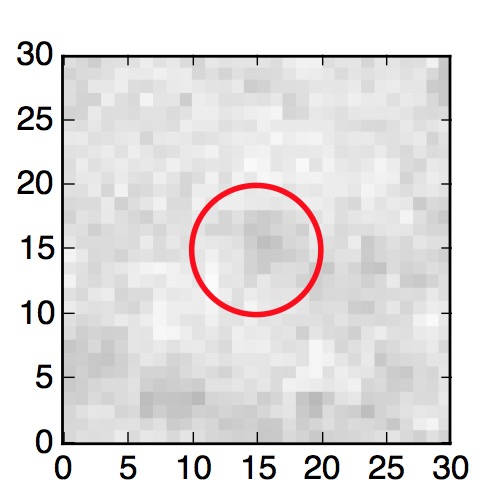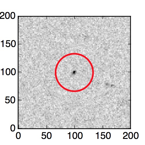 The red circle in the various panels is 1" in radius. The images are 6"x6".