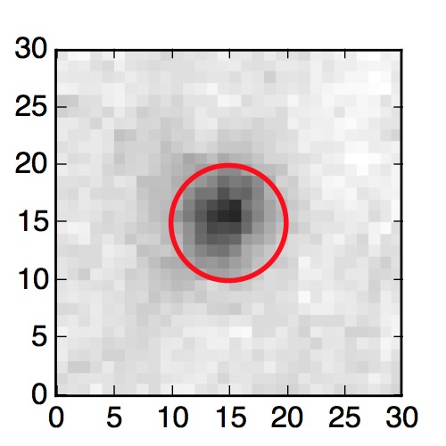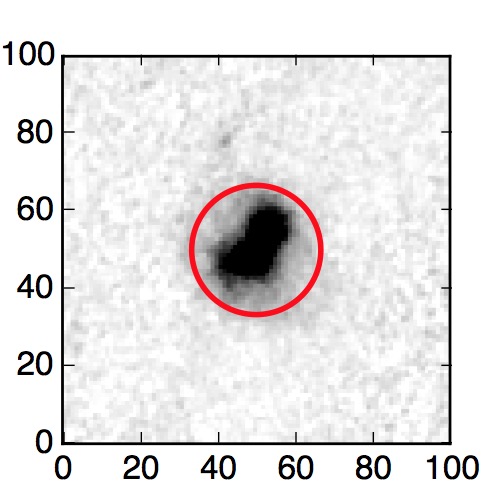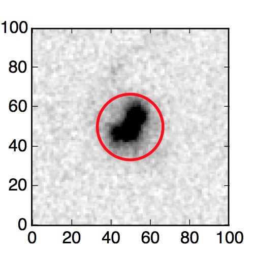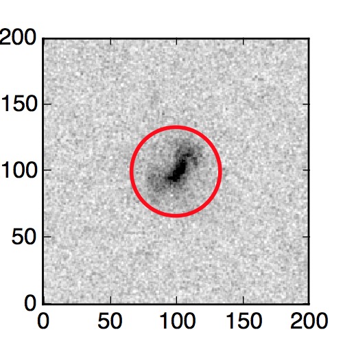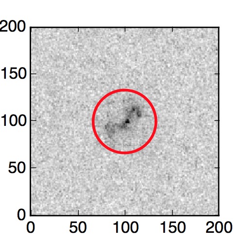 The red circle in the various panels is 1" in radius. The images are 6"x6".