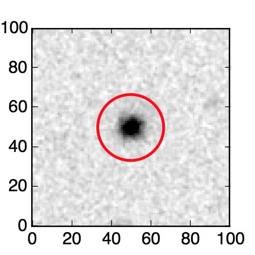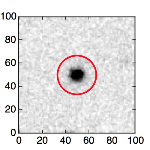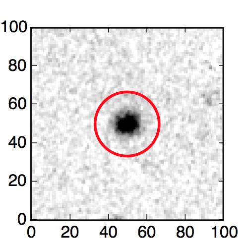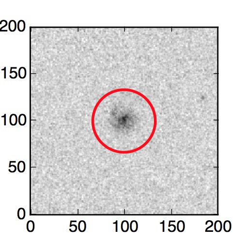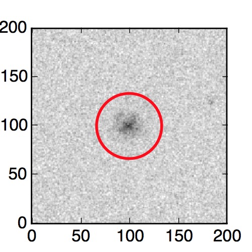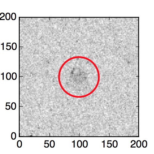 The red circle in the various panels is 1" in radius. The images are 6"x6".