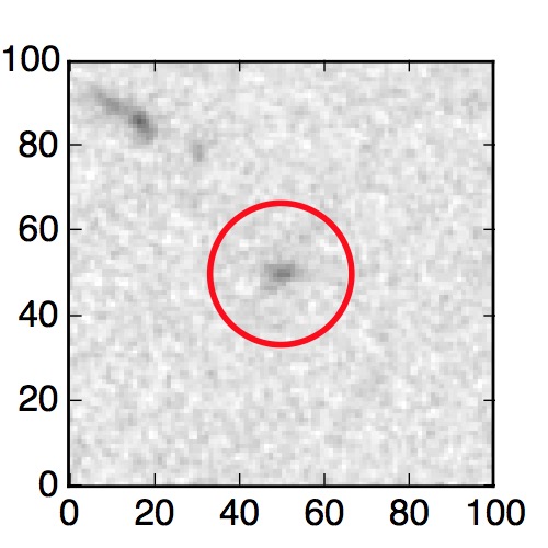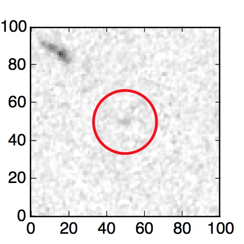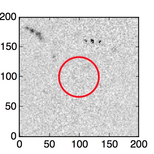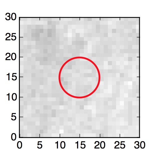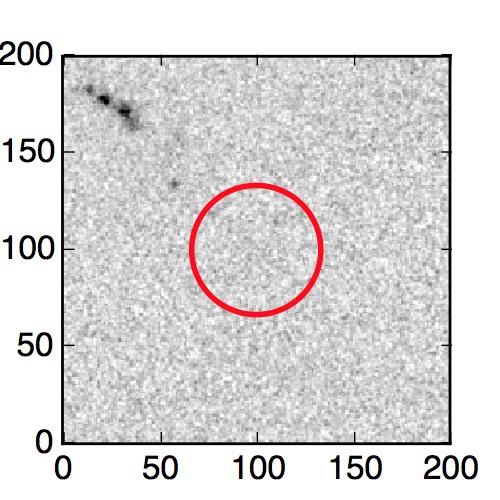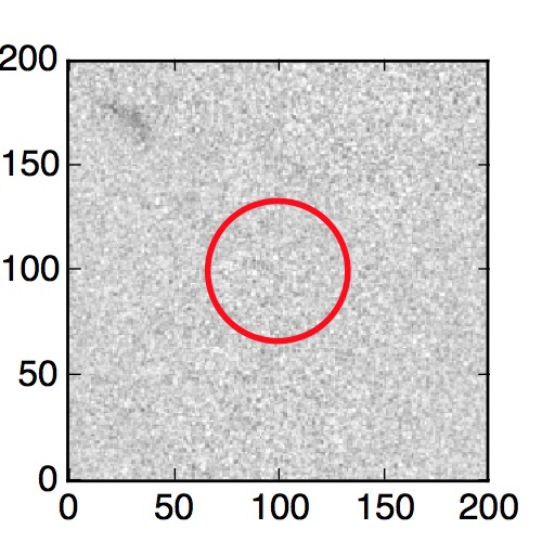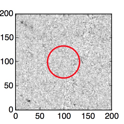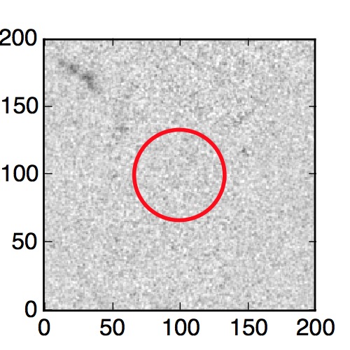 The red circle in the various panels is 1" in radius. The images are 6"x6".
