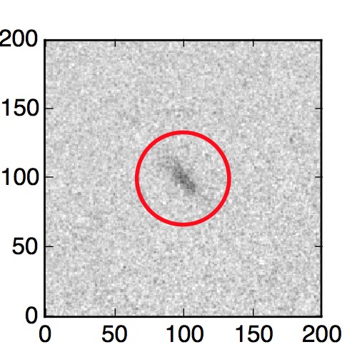The red circle in the various panels is 1" in radius. The images are 6"x6".