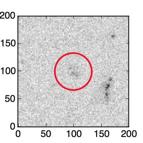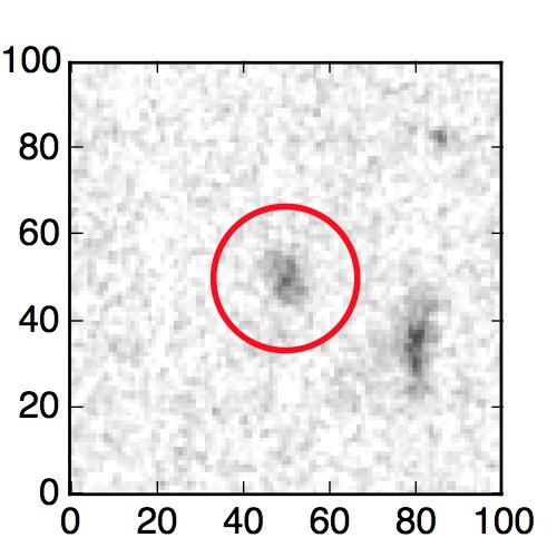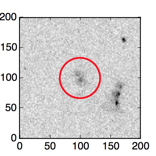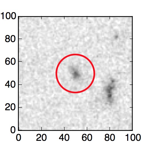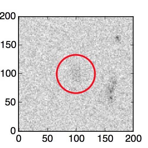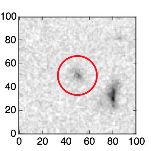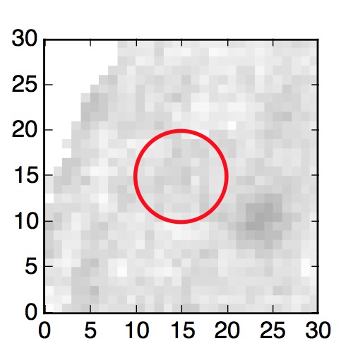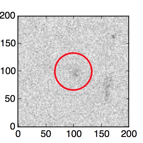 The red circle in the various panels is 1" in radius. The images are 6"x6".