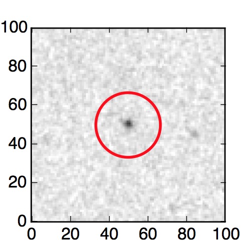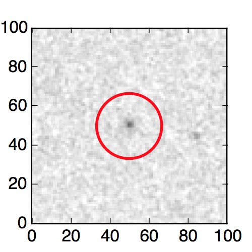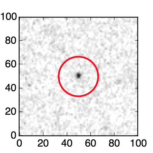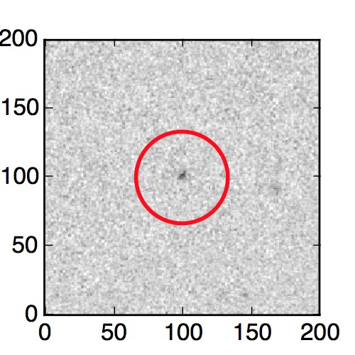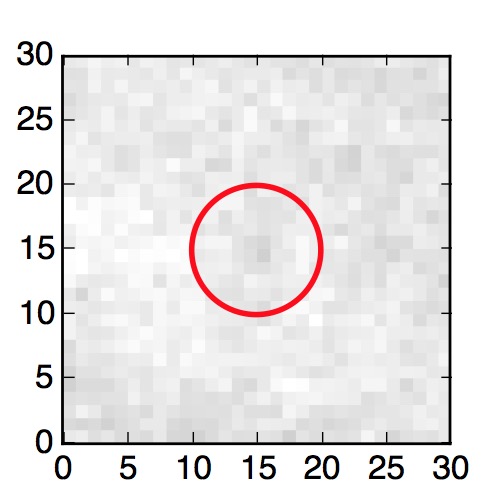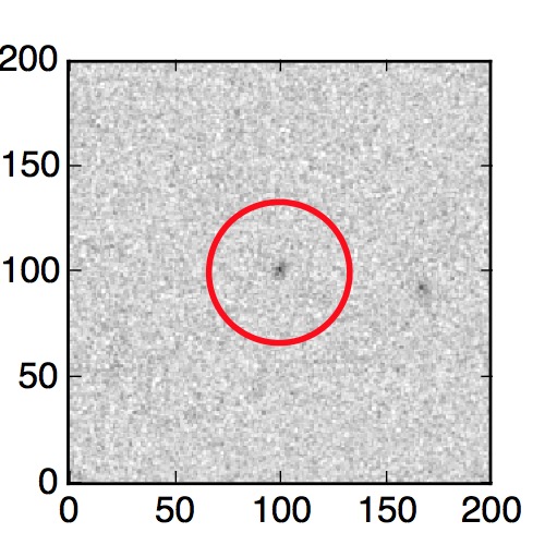 The red circle in the various panels is 1" in radius. The images are 6"x6".