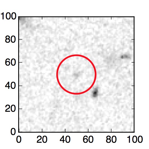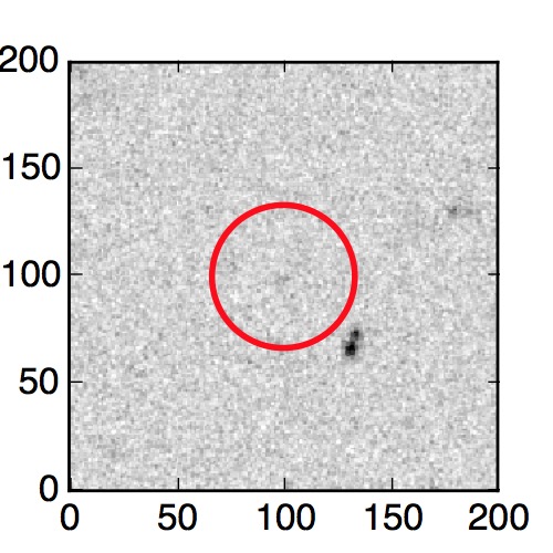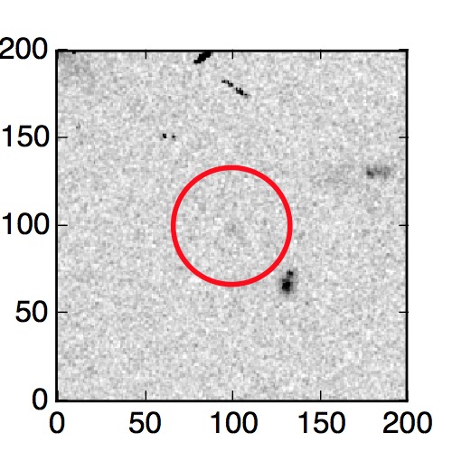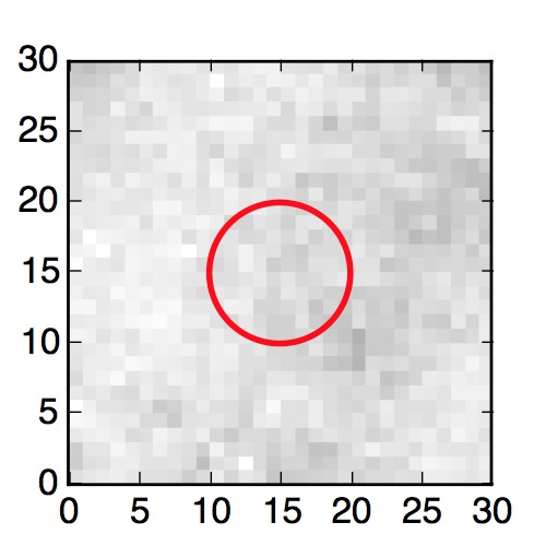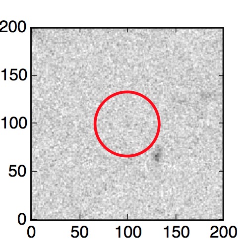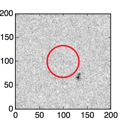 The red circle in the various panels is 1" in radius. The images are 6"x6".