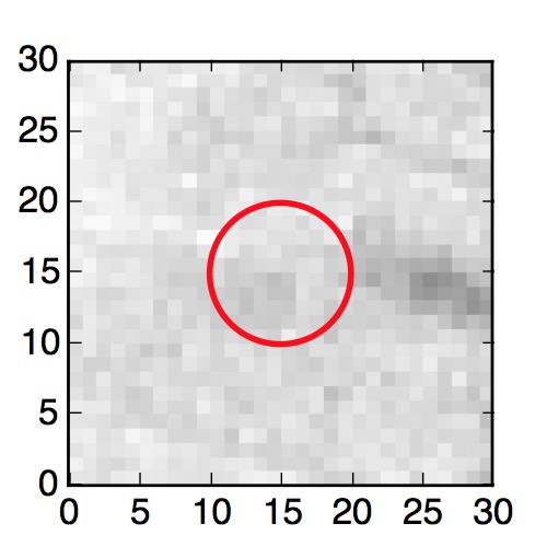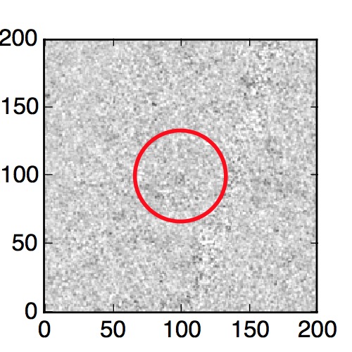 The red circle in the various panels is 1" in radius. The images are 6"x6".