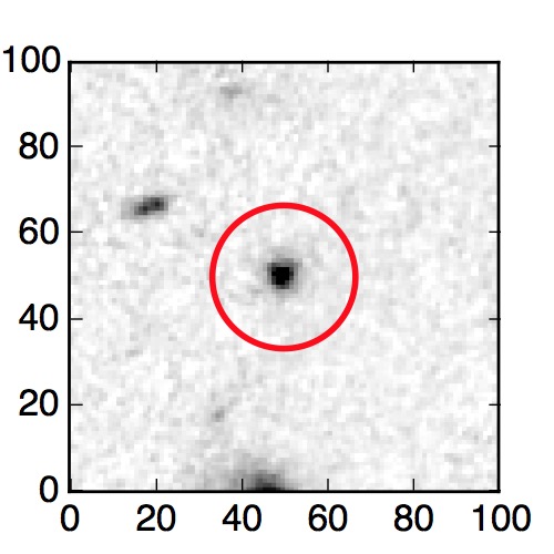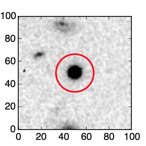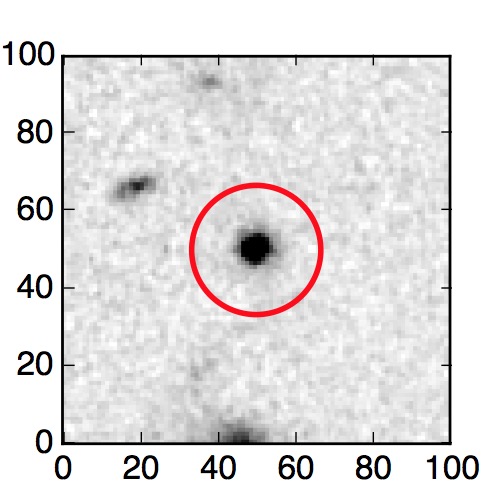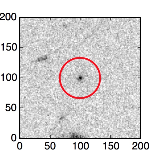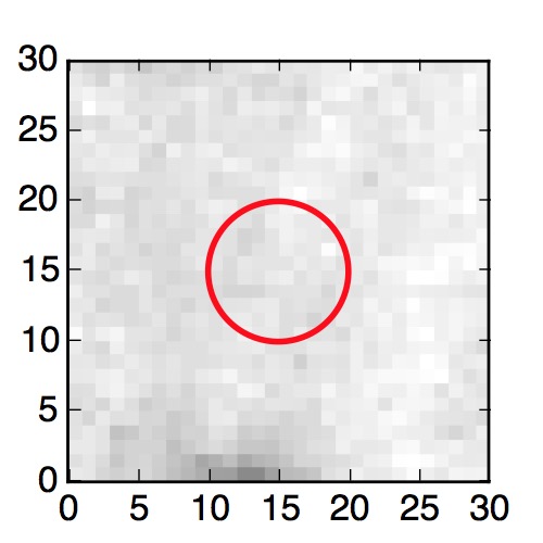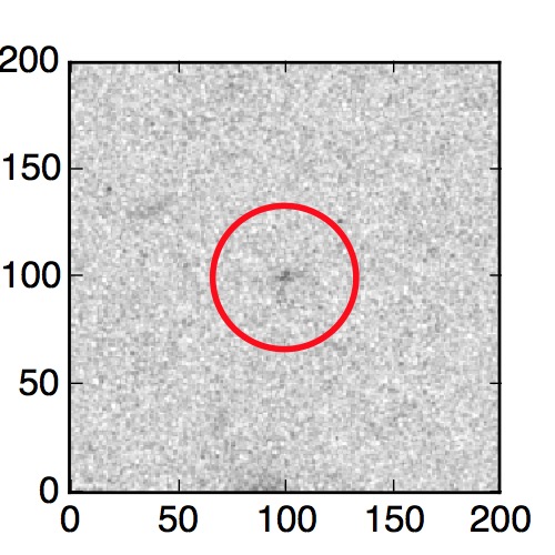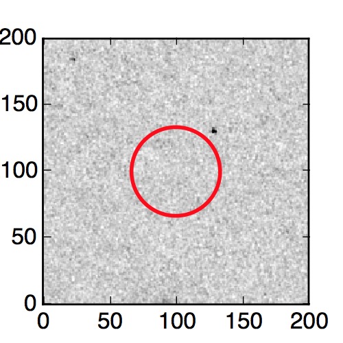 The red circle in the various panels is 1" in radius. The images are 6"x6".