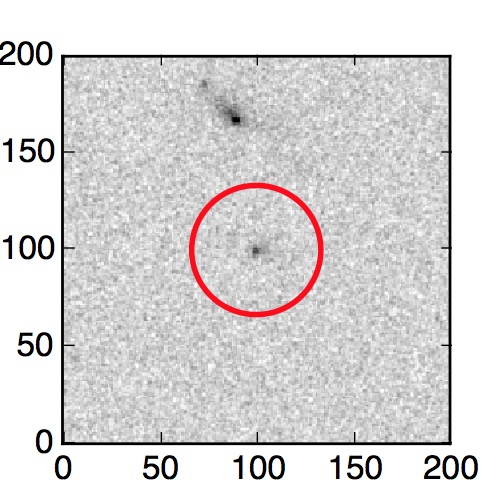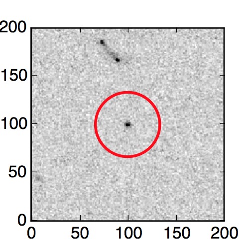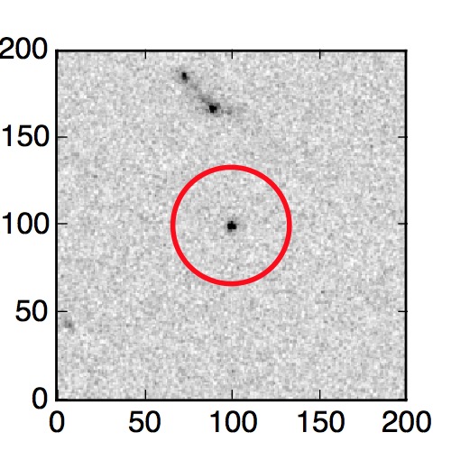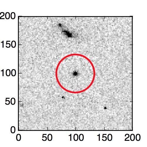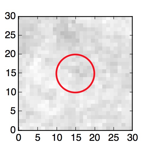 The red circle in the various panels is 1" in radius. The images are 6"x6".