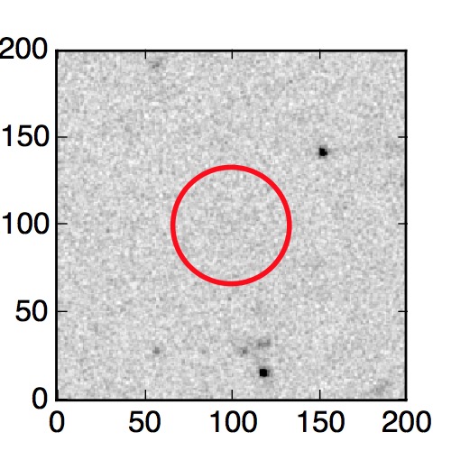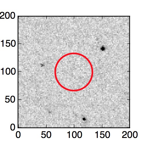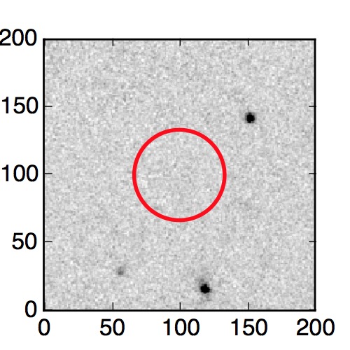 The red circle in the various panels is 1" in radius. The images are 6"x6".
