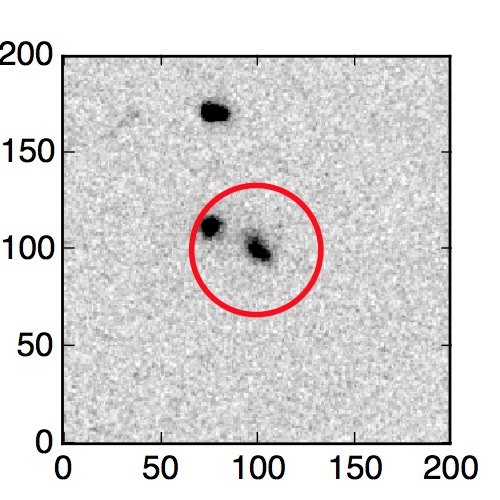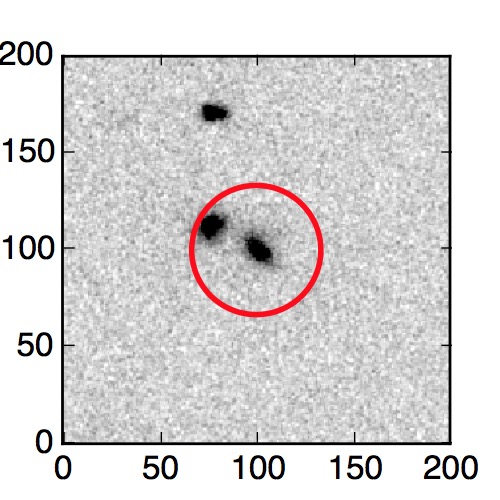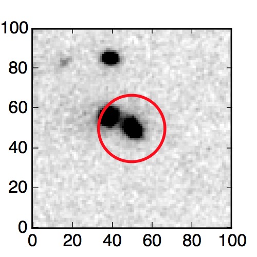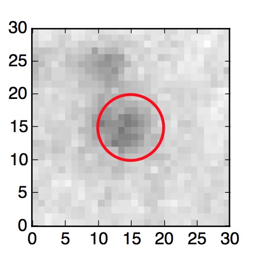 The red circle in the various panels is 1" in radius. The images are 6"x6".
